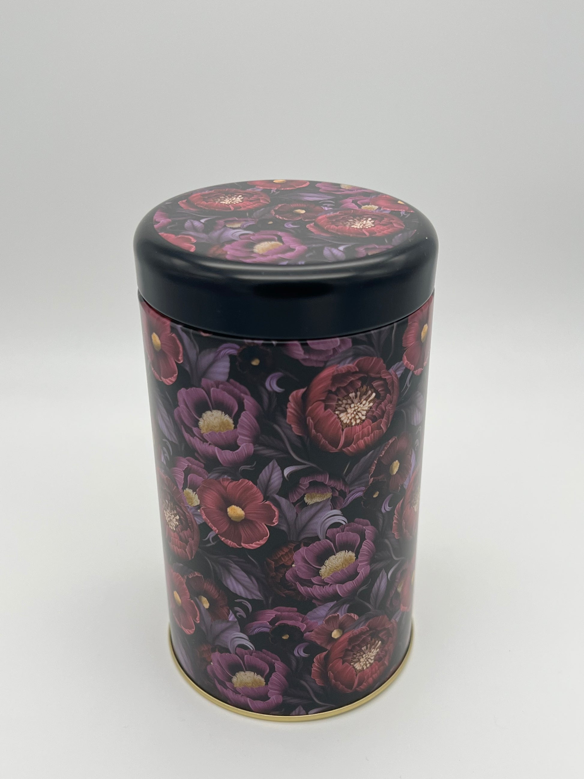 Teedose mit einem schönen violetten Blumenmuster