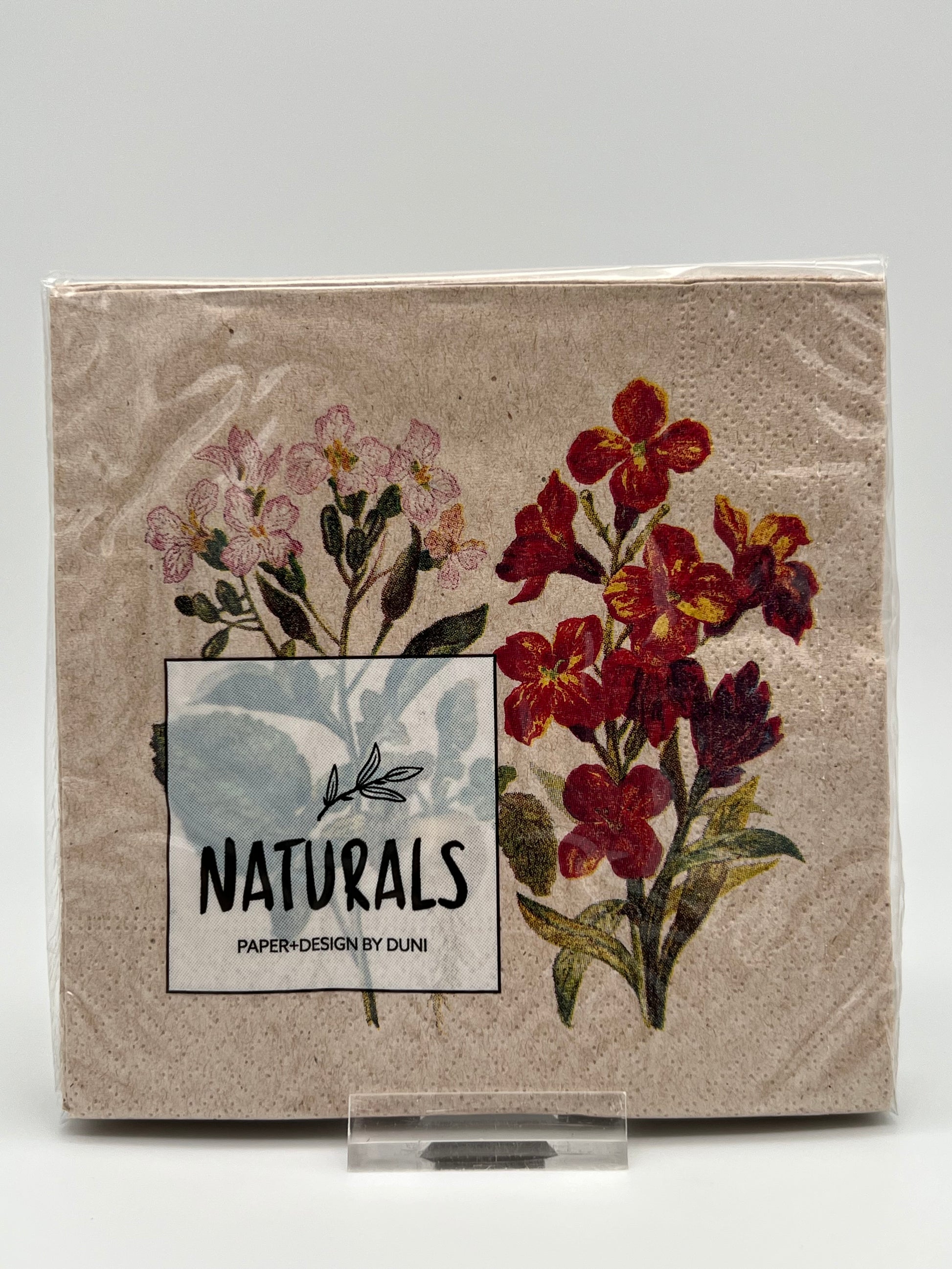 Schöne florale Serviette aus 100% ungebleichten und recycelten Zellstoff-Fasern.